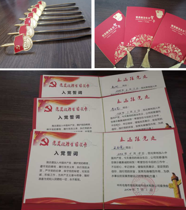 烏海市海勃灣城市供水有限公司為進(jìn)一步增強(qiáng)主題教育的吸引力和感染力,于6月24日開(kāi)展黨員“過(guò)政治生日,憶入黨初心”主題黨日活動(dòng)。五個(gè)黨支部分別在完成奏唱國(guó)歌、重溫入黨誓詞、領(lǐng)誦黨章、繳納黨費(fèi)、學(xué)習(xí)政治理論后為黨員過(guò)“政治生日”。
