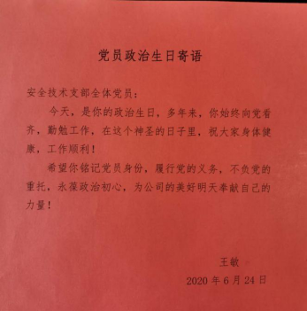 通過(guò)“過(guò)政治生日,憶入黨初心”活動(dòng),讓黨員常思“當(dāng)初入黨為什么、如今在黨做什么、今后為黨留什么”,引導(dǎo)黨員自覺(jué)加強(qiáng)黨性鍛煉,優(yōu)化工作作風(fēng),發(fā)揮模范作用,切實(shí)增強(qiáng)黨支部的向心力、凝聚力、戰(zhàn)斗力。