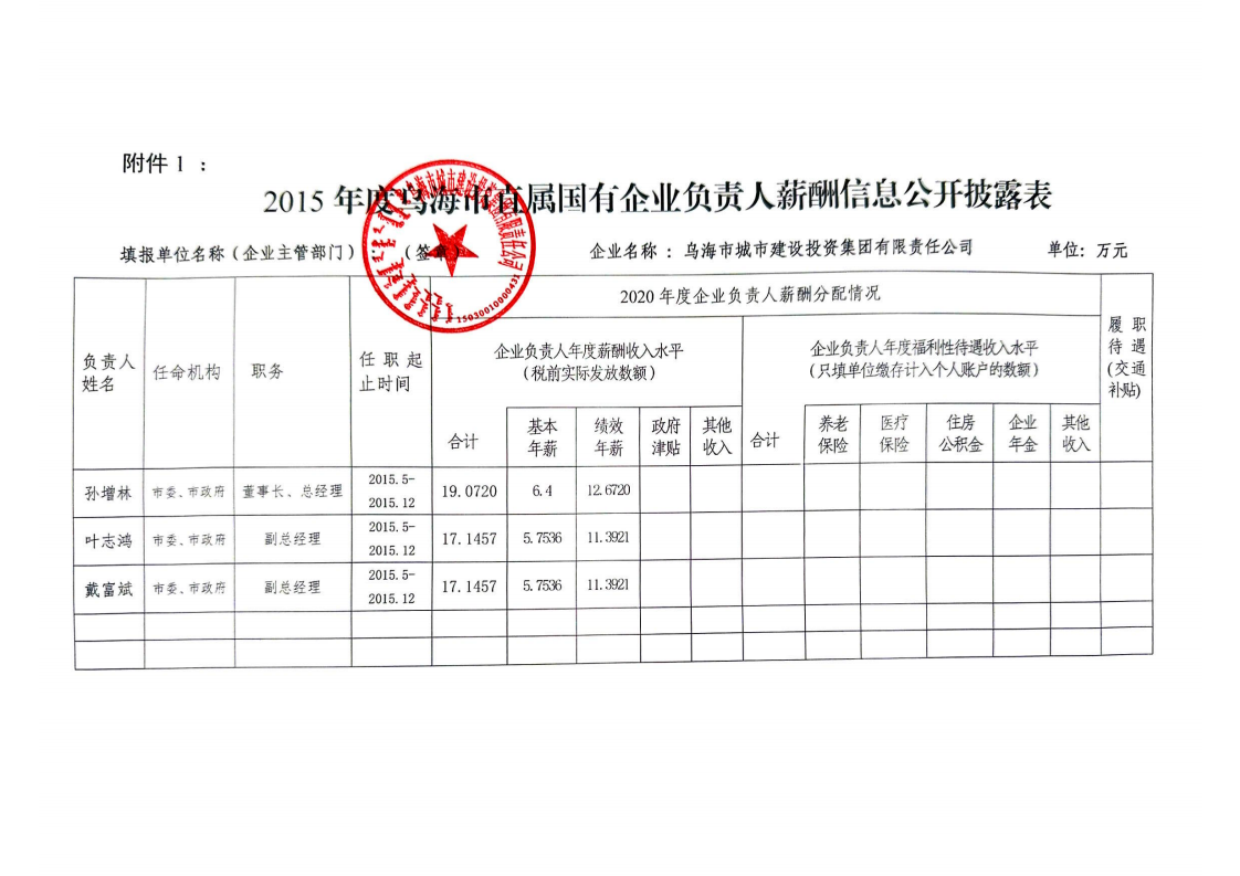 - 2023-01-06烏海市城市建設(shè)投資集團有限責任公司2021年度企業(yè)負責人薪酬信息公開披露表