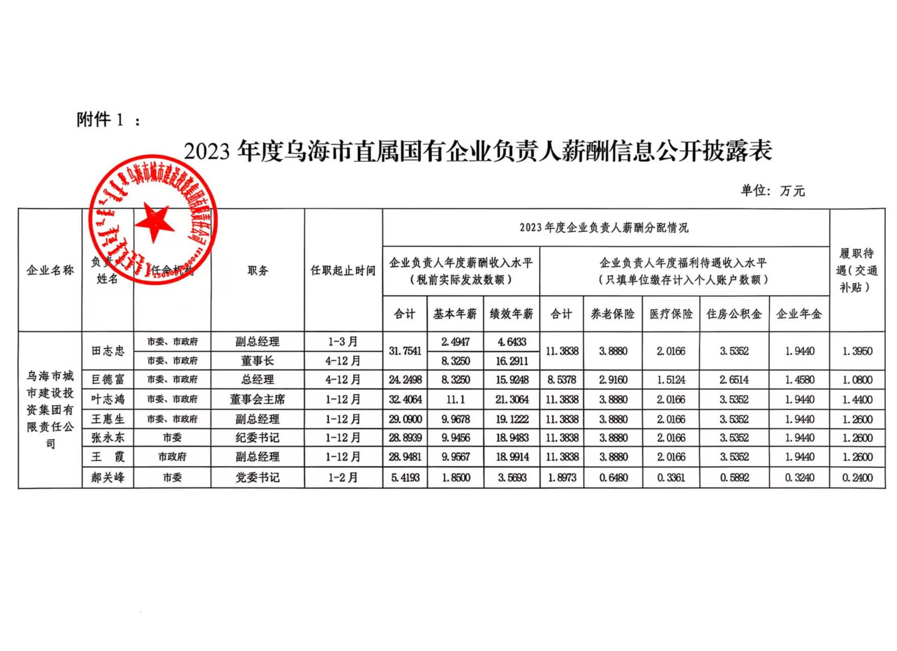 - 2023-01-06烏海市城市建設(shè)投資集團(tuán)有限責(zé)任公司2021年度企業(yè)負(fù)責(zé)人薪酬信息公開披露表