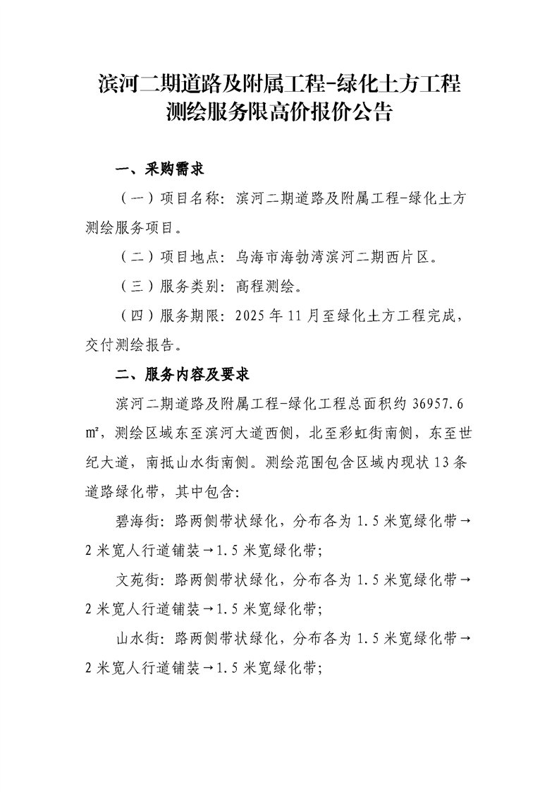 - 2025-10-13濱河二期道路及附屬工程實驗檢測項目市場詢價公告