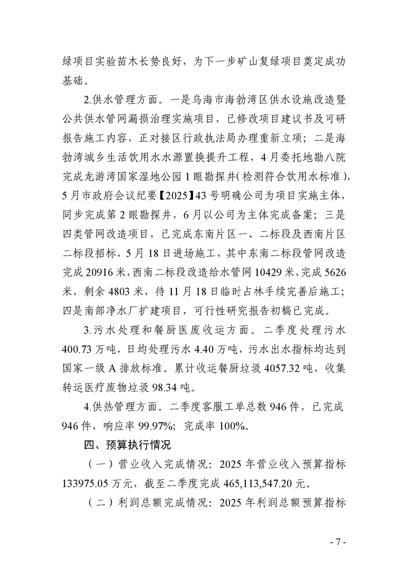 烏海市城市建設(shè)投資集團(tuán)有限責(zé)任公司 2025年度第二季度信息公開報(bào)告