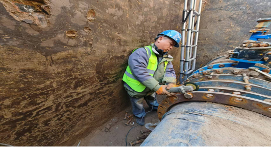 電焊組的師傅們頭戴面罩,手持焊槍,瞬間火花四濺,在黑暗中綻放出奪目光芒,熟練地進(jìn)行切割與焊接工作,其他人員則全力投入到拆卸工作中,他們齊心協(xié)力,將DN800蝶閥、DN800鑄鐵乙管、三通、伸縮器等部件逐一拆卸。盡管汗水濕透了衣衫,雙手被工具磨出了水泡,但沒有一個人喊累,所有人的目光都堅(jiān)定地聚焦在搶修任務(wù)上。